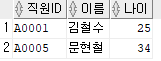 ① 직원 테이블에서 직원ID가 ‘A0001’ , ‘A0003’ , ‘A0005’ , ‘A0010’ 인 대상을 출력