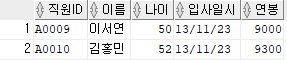 ③ 연봉이 9000보다 큰 직원들의 직원ID, 이름, 나이, 입사일시 출력