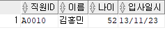 ① 직원 테이블에서 직원ID가 ‘A0001’ , ‘A0003’ , ‘A0005’ , ‘A0010’ 인 대상을 출력